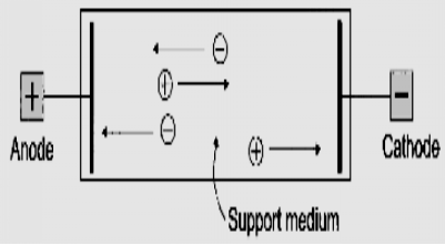 現(xiàn)代電泳多在固體支持物上進(jìn)行,使樣品中的不同組分形成不同的區(qū)帶,稱區(qū)帶電泳。電泳結(jié)束后,支持物可以方便地進(jìn)行染色等后續(xù)處理。 對支持物的一般要求是均勻,吸附力和電滲小,機(jī)械性能好,便于染色或紫外光下檢測,故最好透明,無紫外吸收。常用支持物有濾紙,醋酸纖維素薄膜,淀粉凝膠,聚丙烯酰胺凝膠,瓊脂糖凝膠等 支持物性質(zhì)不同也會影響泳動(dòng)速率,如瓊脂糖和聚丙烯酰胺凝膠都有大小不同的篩孔,在篩孔大的凝膠中溶質(zhì)顆粒的泳動(dòng)速率快,反之則慢。